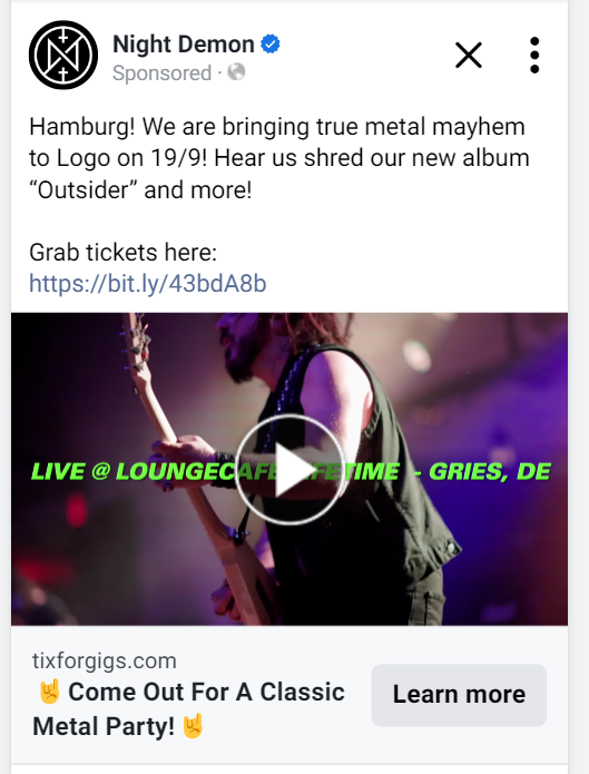 We also created ad content that highlighted how exciting their live show was, but also that there was a new album. Not only that – but every ad was made bespoke to the city it was for, specifically naming the venues and towns so that people knew exactly where to go. We emphasized that on both the ad text and the video itself.