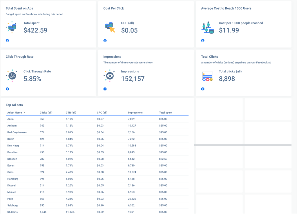 The end result of this was for just over $400 we were able to get 152,157 impressions, 8898 click throughs and the band benefitted from a dramatic increase in awareness of their tours. The setup is time consuming, but it’s effective in getting heads through the door!